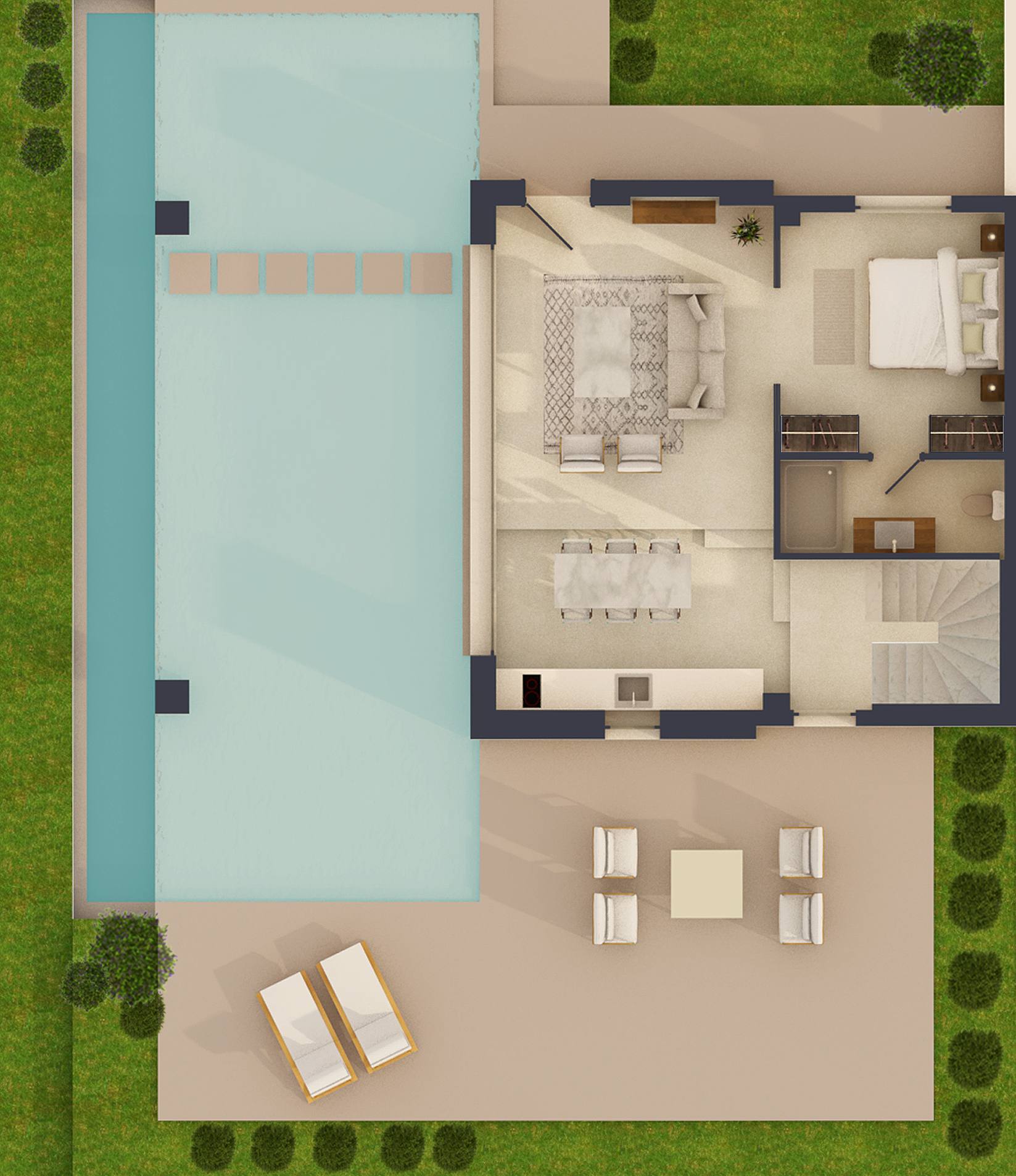 Geheizter Privater Pool mit komfortablen Sonnenliegen